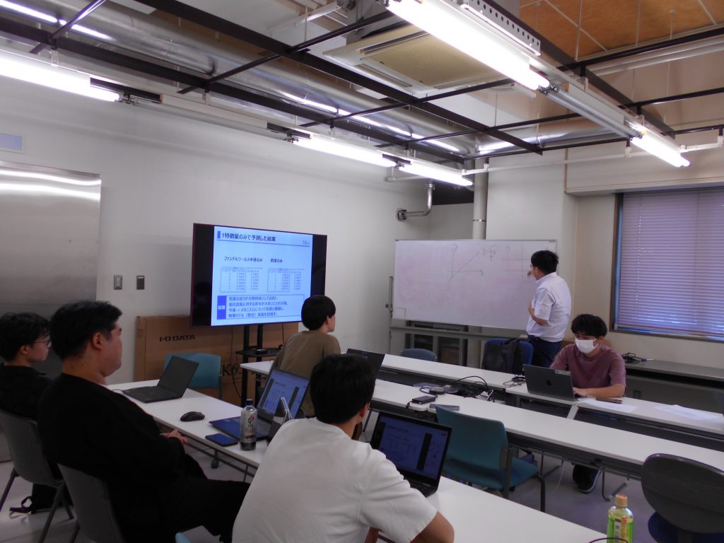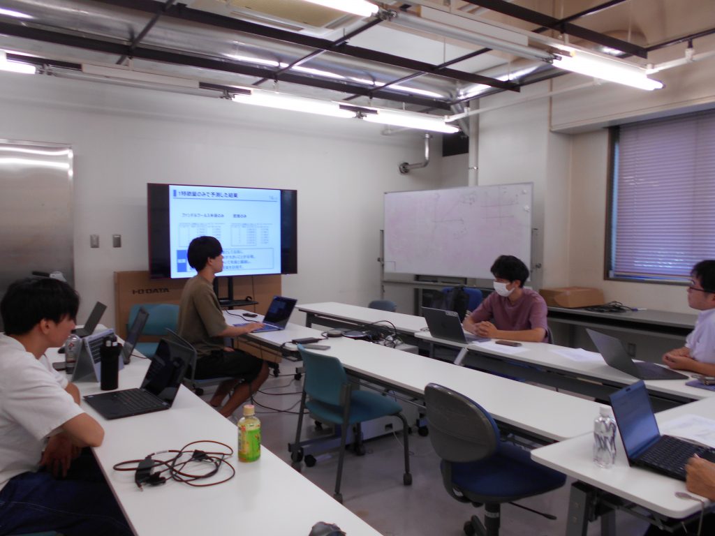 今年度は2グループに分かれ、アドバイザーとして田中主管技師長(㈱日立ハイテク)、五十嵐康彦准教授(筑波大学システム情報系)を迎え、各々が進めるデータサイエンス研究について、貴重なコメント、アドバイスを受けることができました。